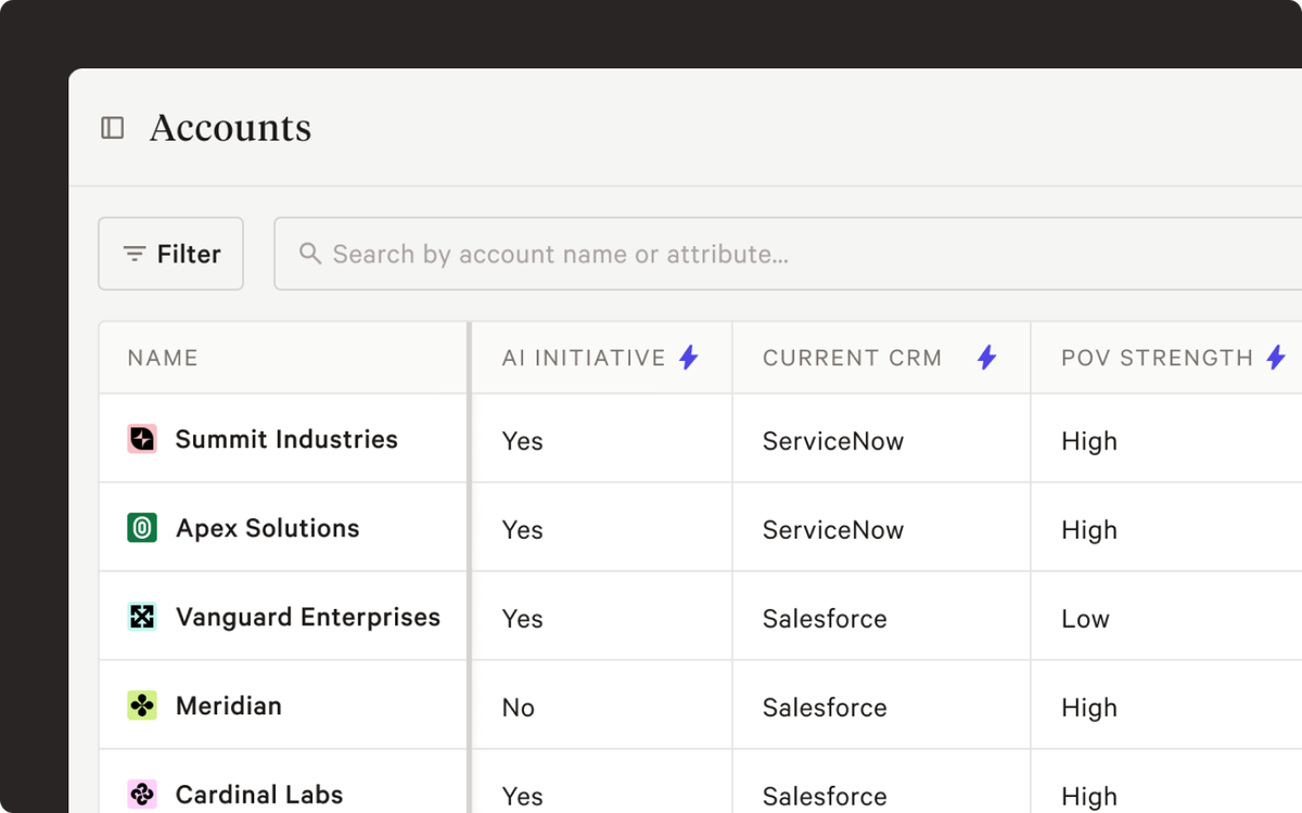 Most importantly, attributes can arm your team with real-time prioritization based on where your point of view is the strongest, across tens of thousands of accounts.