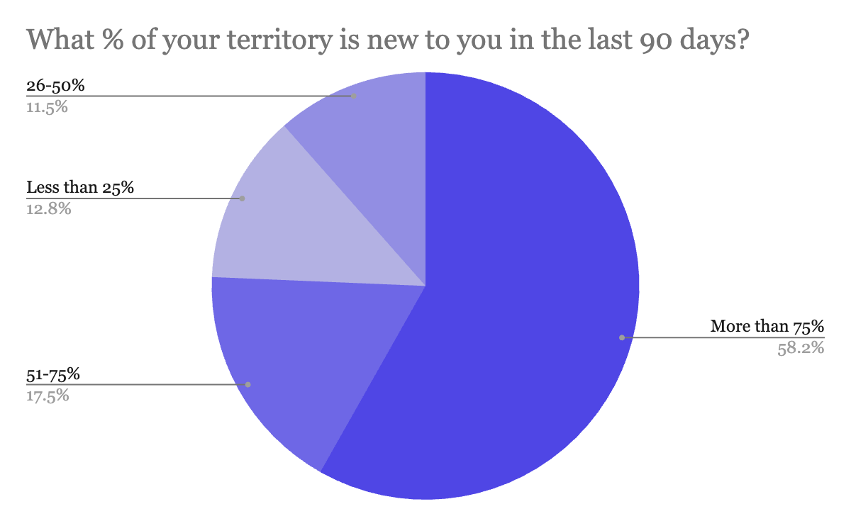 More than 58% of respondents noted that three quarters or more (75.7%) of their territory had changed in the last 90 days.