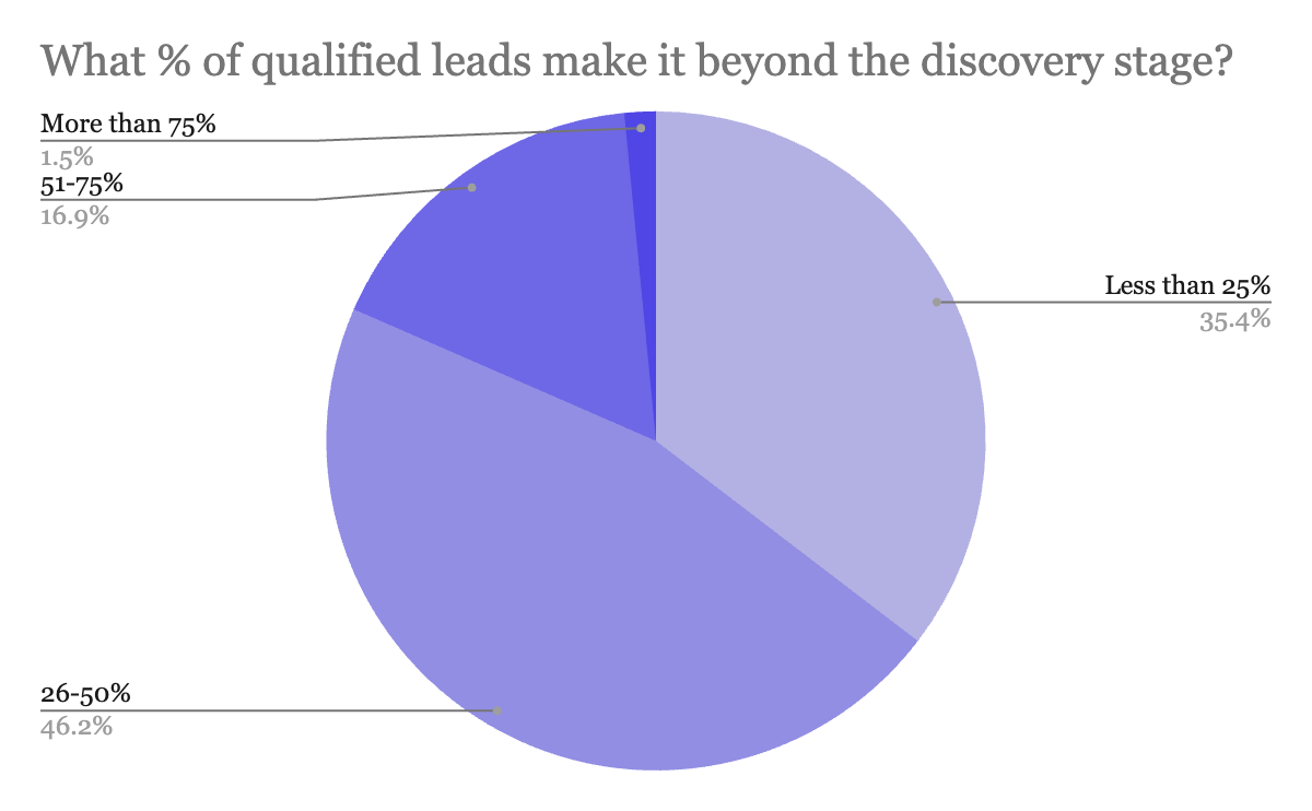 Perhaps then it’s also no surprise that 35.4% of revenue leaders in the same, pre-Poggio survey noted that less than 25% of their qualified leads make it beyond the discovery stage. A whopping 81.6% of revenue leaders noted that 50% or less of their qualified leads advance on.