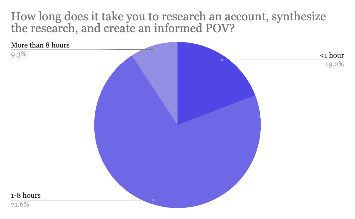 While nearly 20% can create an informed POV in an hour or less, more than 70% take up to 8 hours, while nearly 10% take more than 8 hours.