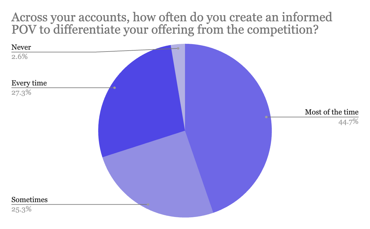 The numbers are similar when looking at how often sellers come prepared to sales calls with an informed POV about the customer’s business to help differentiate their pitch from competitors.