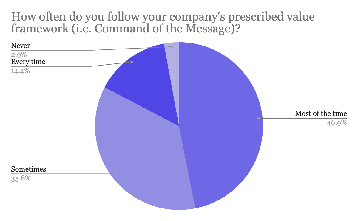A stunning 2.9% of sellers admitted never following their company’s prescribed value selling framework while another 35.8% only sometimes follow it.